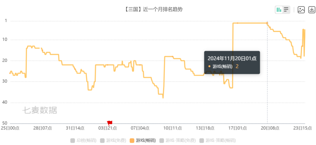 最近,游戏在11月16日更新S4赛季后,又冲上了iOS游戏畅销榜第二。这也意味着,自上线以来,《三谋》已经连续4个赛季进入畅销榜Top 3了。前阵子,B站在其2024年Q3财报中,也大肆肯定了《三谋》的成绩。