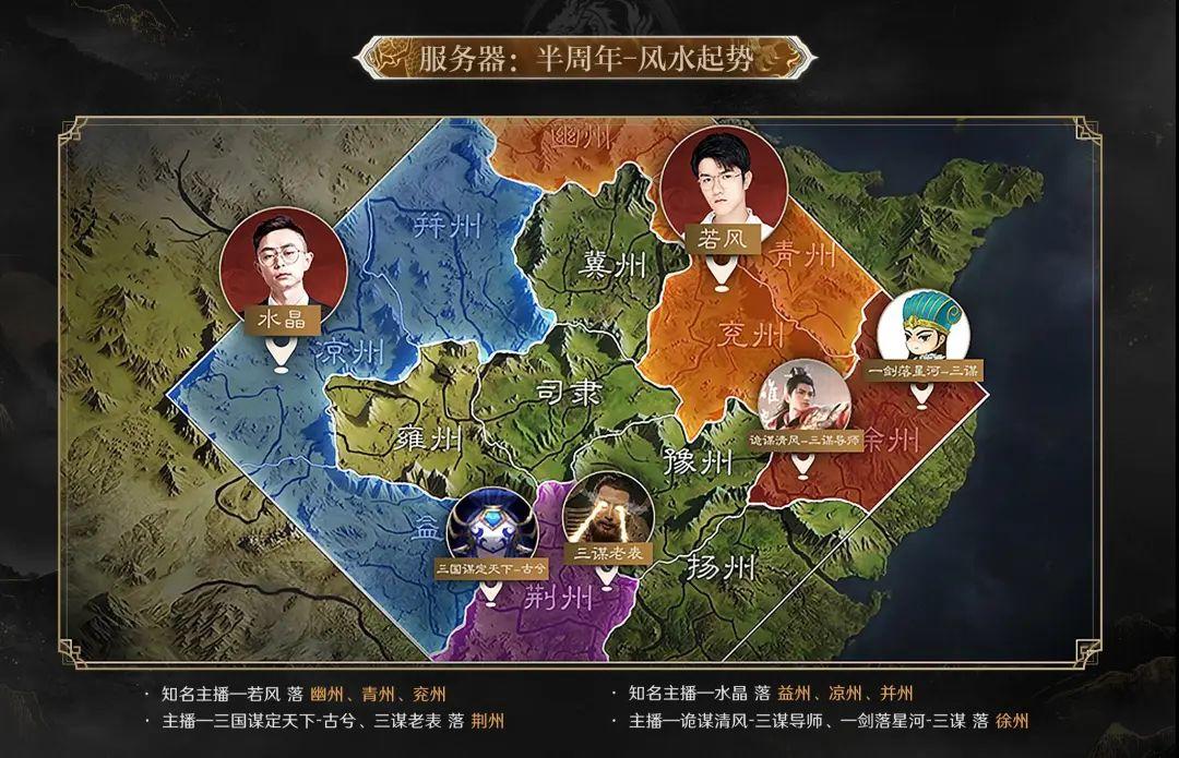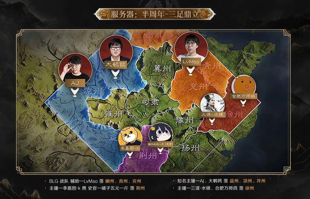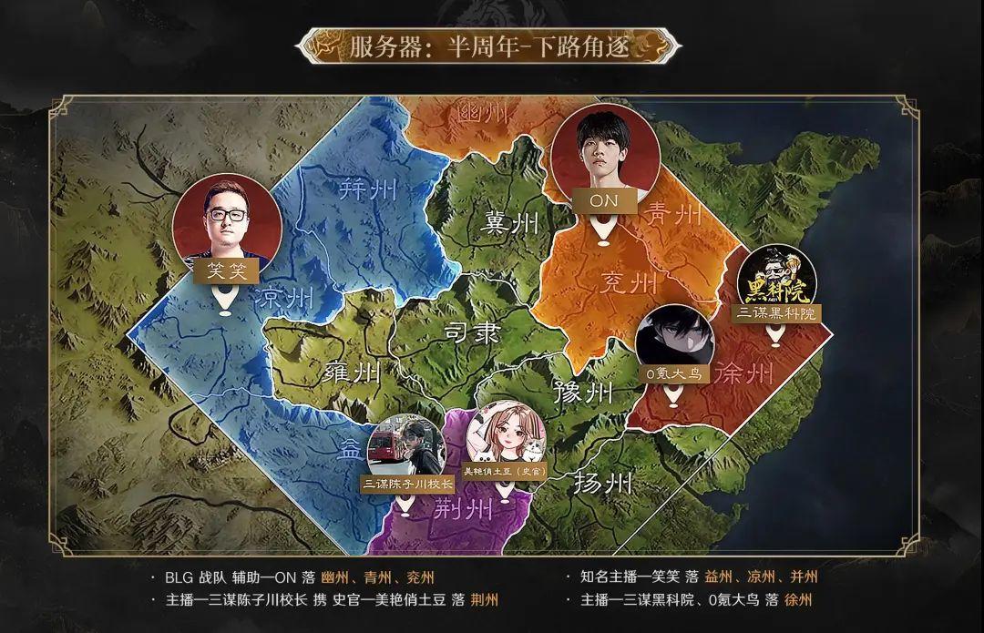 一方面,为了让圈外的LOL玩家也能看懂《三谋》故事、体会到“人与人斗”的焦灼氛围,游戏官方在主题服名称、落州图上下了不少心思。他们并没有一股脑开几个服务器,把选手、主播丢进去就完事,而是特地根据选手、主播在LOL的身份做了区服划分,给他们安排了最旗鼓相当的对手。