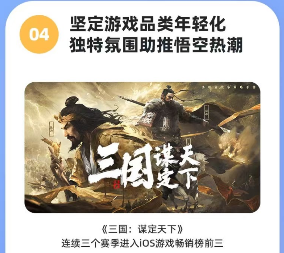 聊到这里,你应该已经对《三谋》的发行策略有了一定了解。用此前于杨的总结来说,他们走的是品牌+流量+内容的路线,用品牌来占领用户心智,用内容社区生态来留住用户,这也是他们能将游戏推给年轻用户的重要原因。
