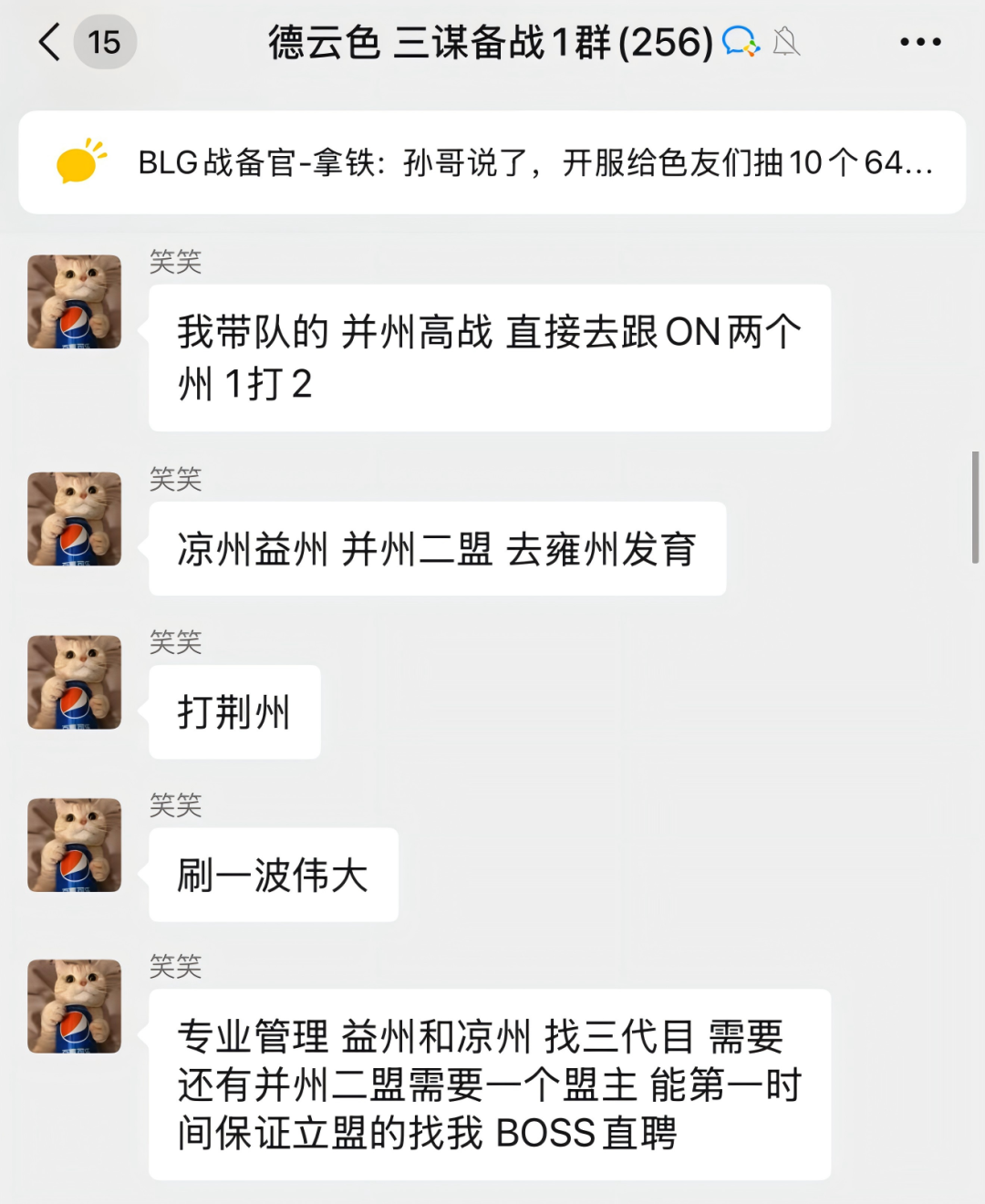 后又在各自的《三谋》备战群里卷起了军备费,从30张大月卡,卷到10个648……这种招兵买马的抢人策略,怎么能不算是计谋呢?