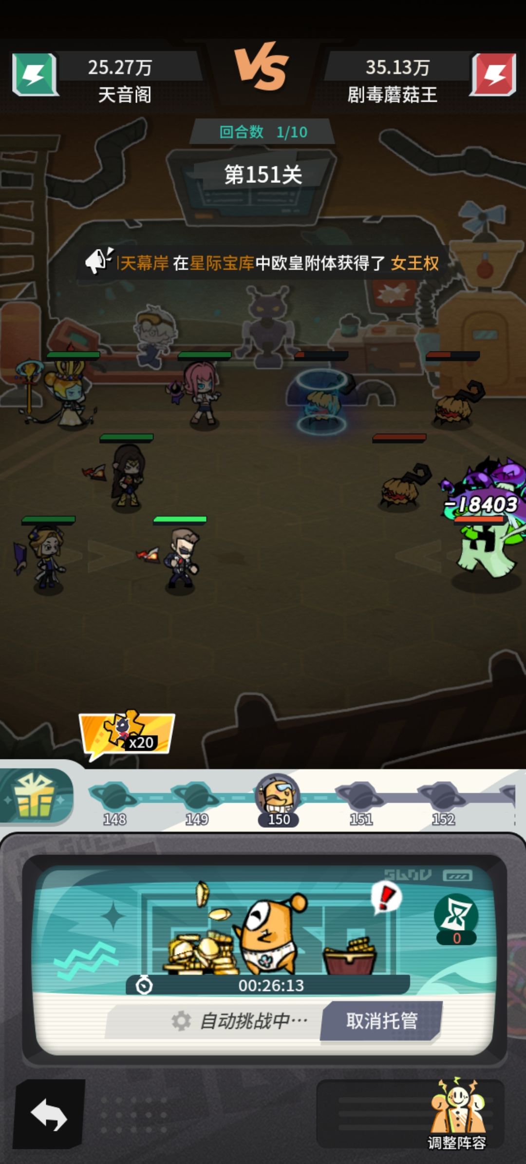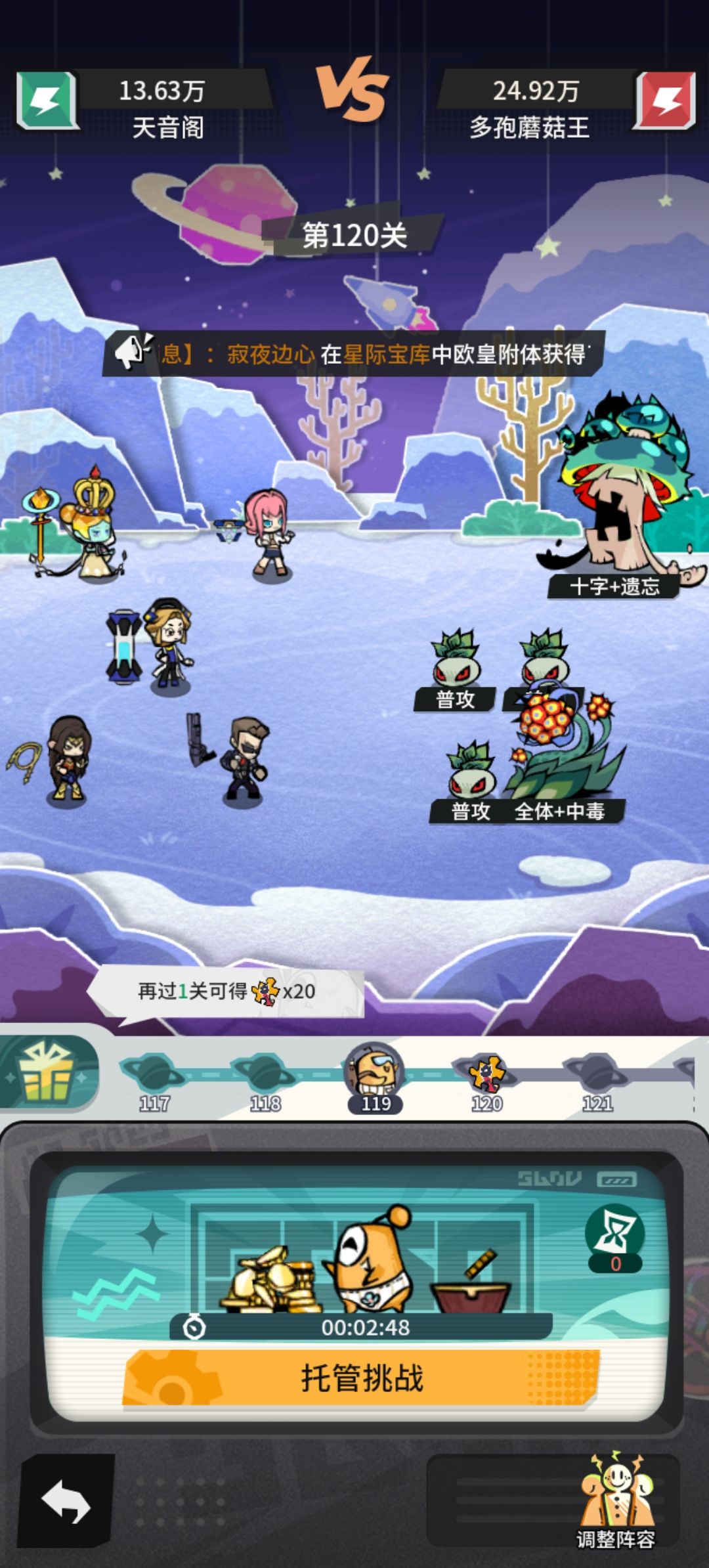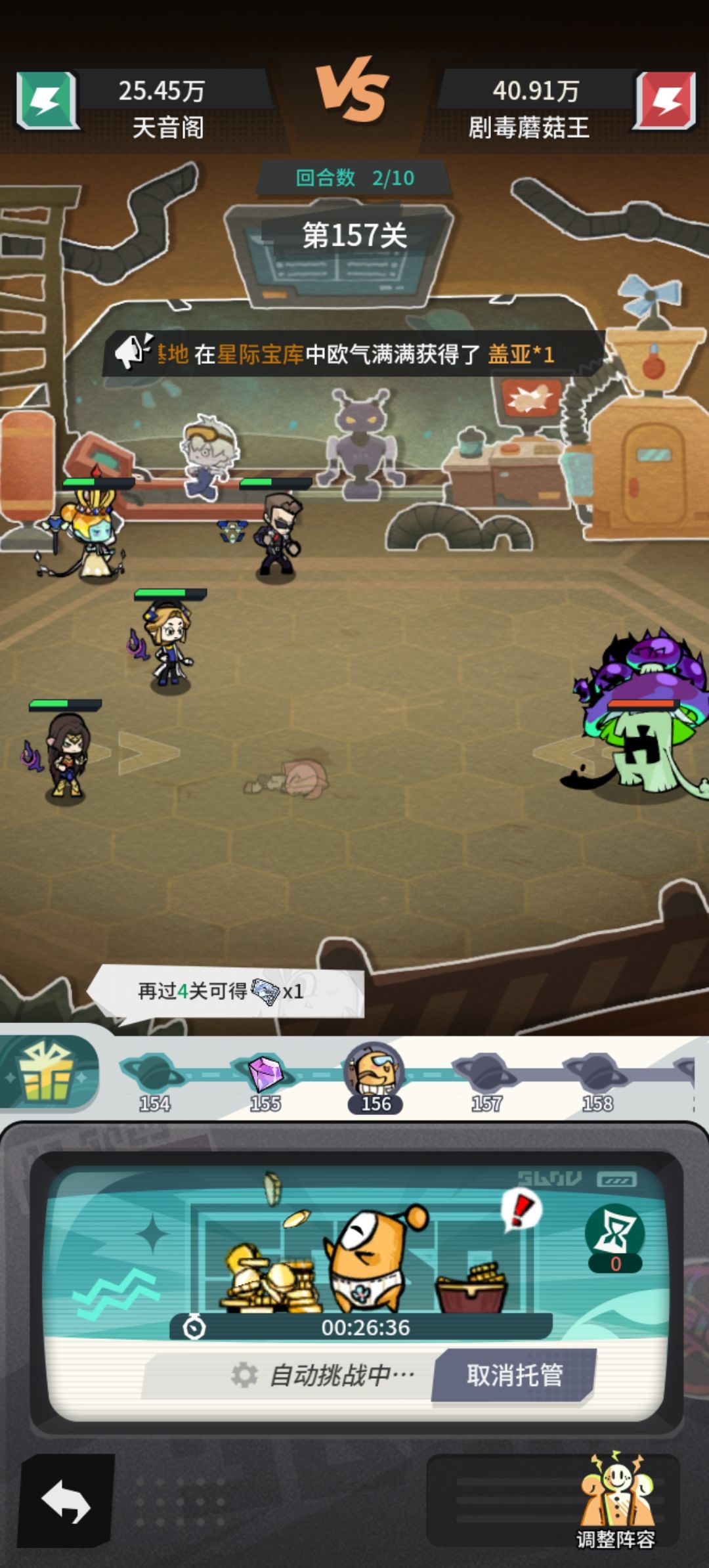 157细节:有条件的卡一下敏捷(也就是下鞋子,控制出手速度),让赫拉先手放技能,提高全体攻击和命中(所有闪避蘑菇都可以用这个方法打)