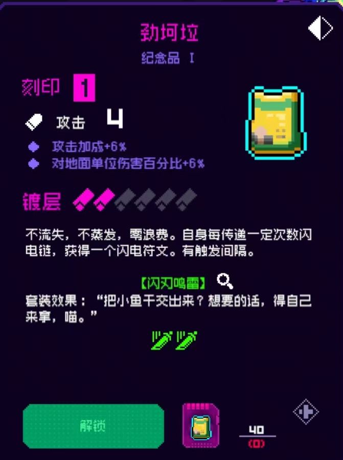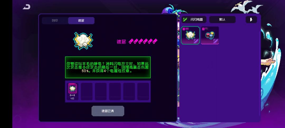 40纹章效果:获取闪电符文间隔缩短一秒,基本可以做到无缝衔接,但达到40纹章比较难。