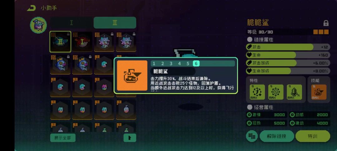 技能3:额外近战攻击力到12点之后获得飞行能力,相当于自带一个天马,所以需要洗近战攻击力的词条。