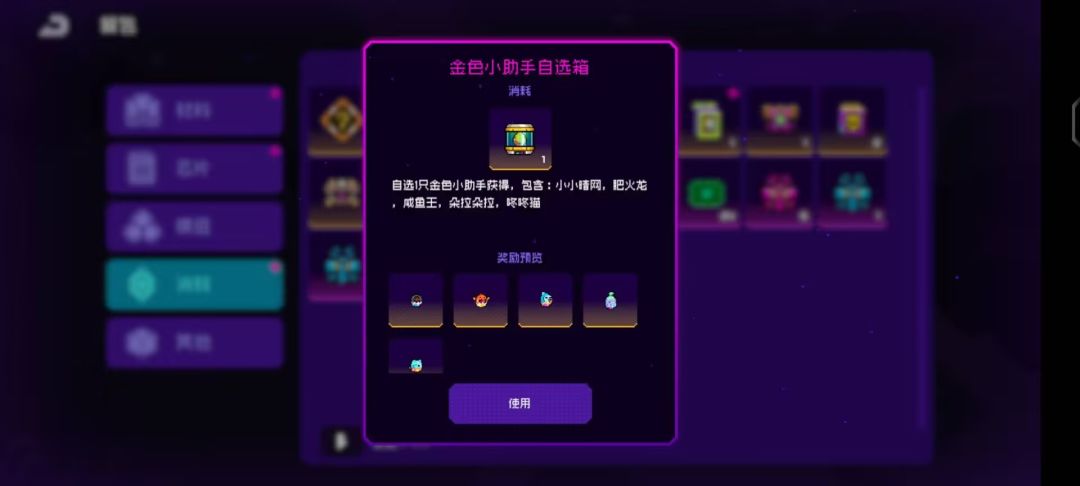 3.累计充值68元获取一个金色小助手箱子,里面可以选择换1只: