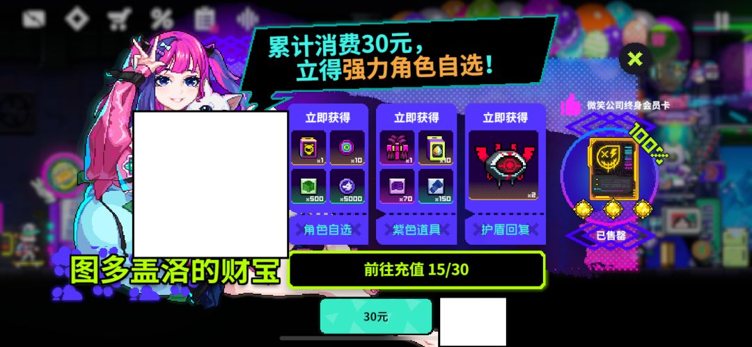 1.累计充值30元获取2只: