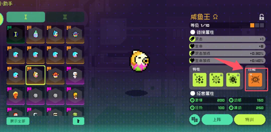 如果需要升级技能,就喂养相同技能的即可。例如我的咸鱼想升到6级暗网技能,还需喂2只暗网。