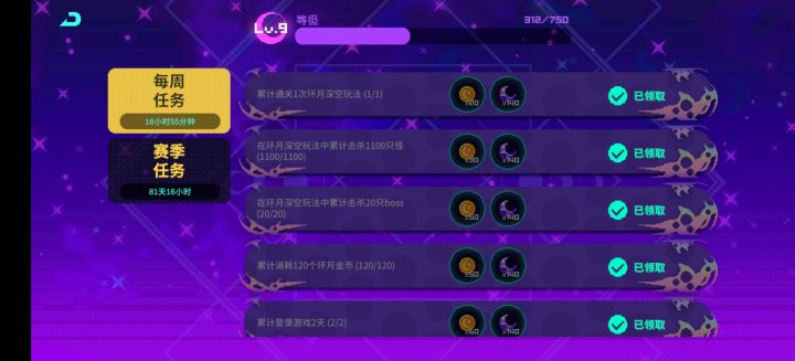 每周任务+赛季任务,能完成的都完成。