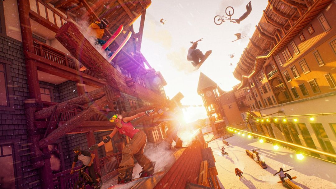 游戏本质上是需要连接网络的,那么育碧的“土豆”服务器就无法绕过,土豆就是土豆,经常有各种网络问题,让人十分头疼。如果在游戏中无法连上服务器,就只能在禅模式中游玩,无法解锁进度。但正常来说,这个偌大的开放地图也会有其他玩家的身影,看到其他玩家在翼装飞行时在天空中翻飞,在公园的坡道上来一场滑板秀。当然也可以和其他玩家进行组队联机探险,一起参与赛事。尤其是一场赛事最多支持64人同台竞技,那个场面真的十分热闹,但对服务器也有很大的考验。