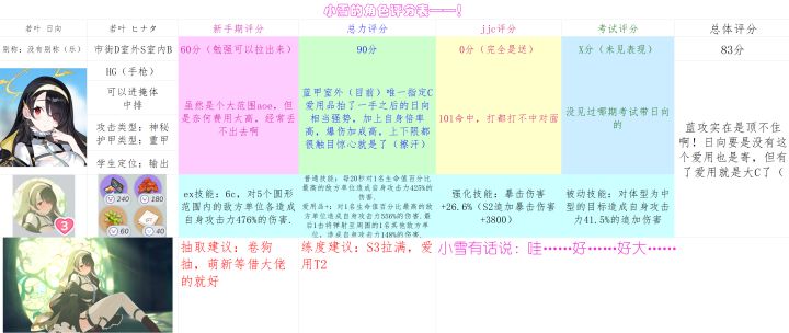小雪の角色评分表——(第13期)