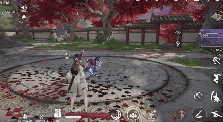 心怀慈悲之人,携手救助苍生。殷紫萍的奥义恢复状态下,天海使用奥义【金刚伏魔·治愈】,其踩踏和大跳动作都会产生“步步生莲”,为范围内的队友提供生命回复。