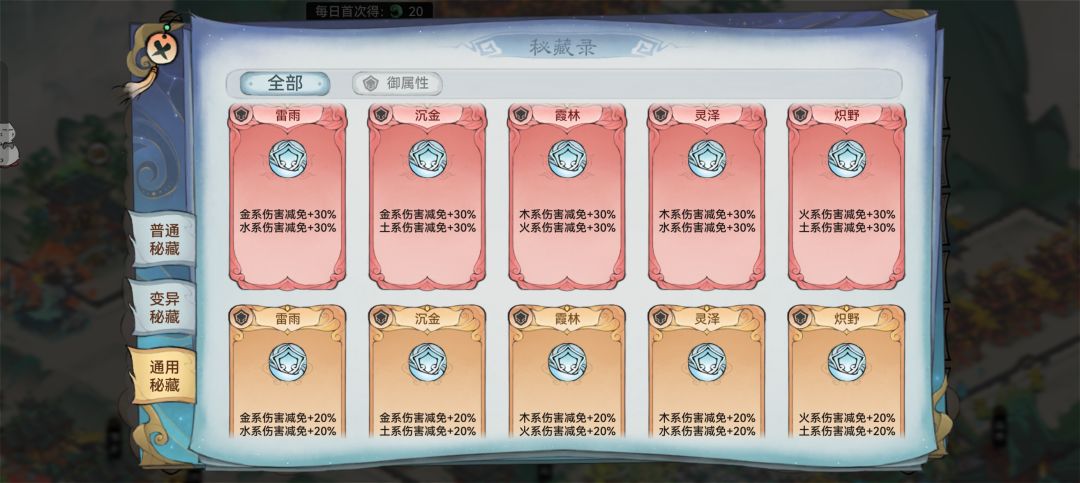 推荐金系灵根变异,以增加速度和暴击率。变异密藏可以选择雷池或主要使用的技能密藏。有各种百分比五行减伤的话也很好,完全可以。