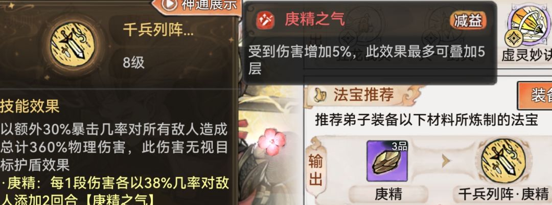 B虚灵妙诀,造成伤害时,减少对方一个增益buff,虽然有上限但可以忽略不计。