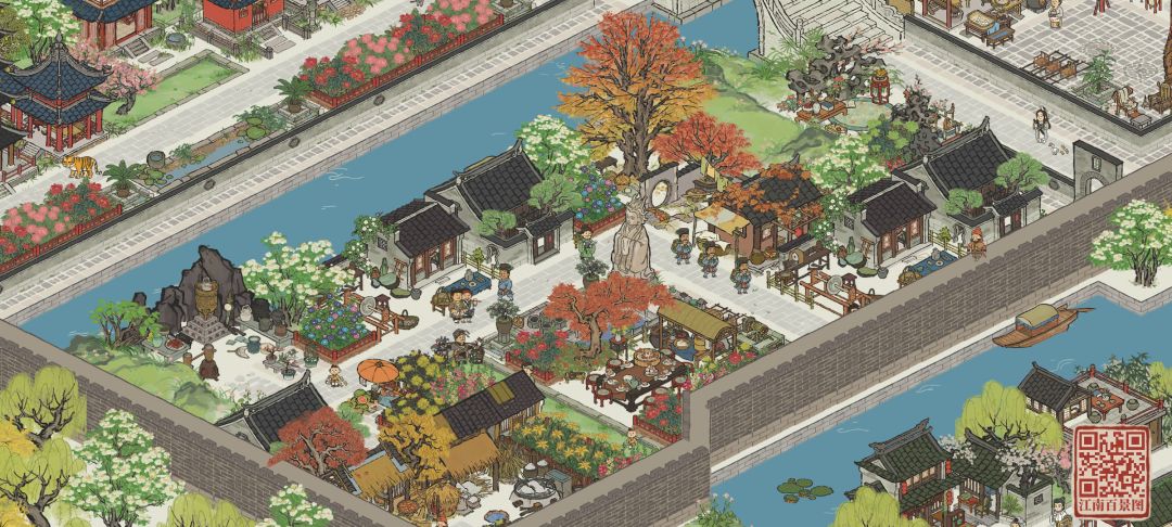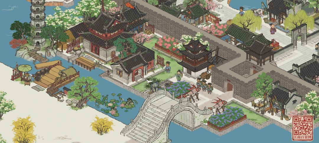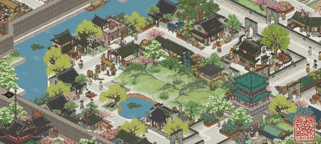 春光小憩,在这里的城内百姓,会放慢脚步,赏花观鱼。