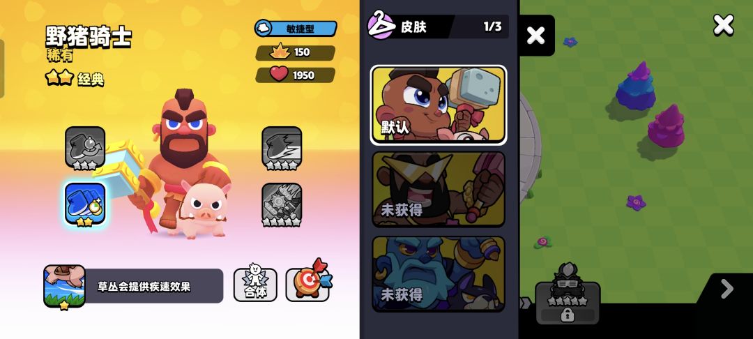 根据爆裂小队的设定,野猪骑士在草丛地形的优势最大,只要踏进草丛就能开启极速。随着觉醒等级的提升,之后还会解锁极速效果持续时间提升,极速充能速度提升,极速进一步提升移动速度,极速进一步提升攻击速度的效果。