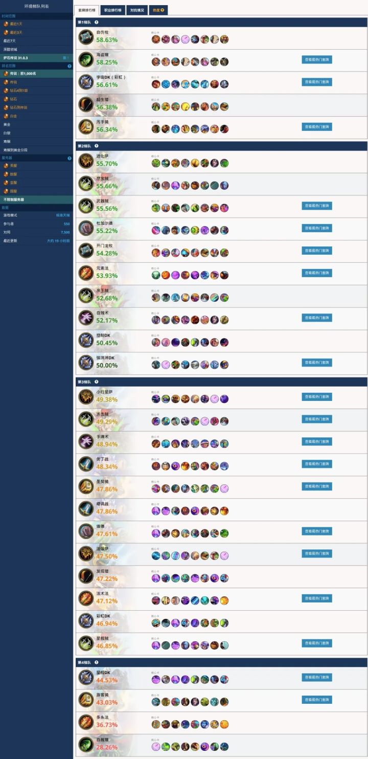 两个职业断层领先,胜率打到恐怖的72%+,估计看到这个结果很多小伙伴又会抄卡组赶紧入场了,然后污手骑和食人魔贼(应该就是武器贼,但是在梯队那里还有武器贼的排行,这里有些乱,因为数据库里看不到这个食人魔贼的卡组数据),胜率又断崖下跌,所以说光看胜率不考虑自己熟练度情况下去打天梯,是不可取的无脑送分。