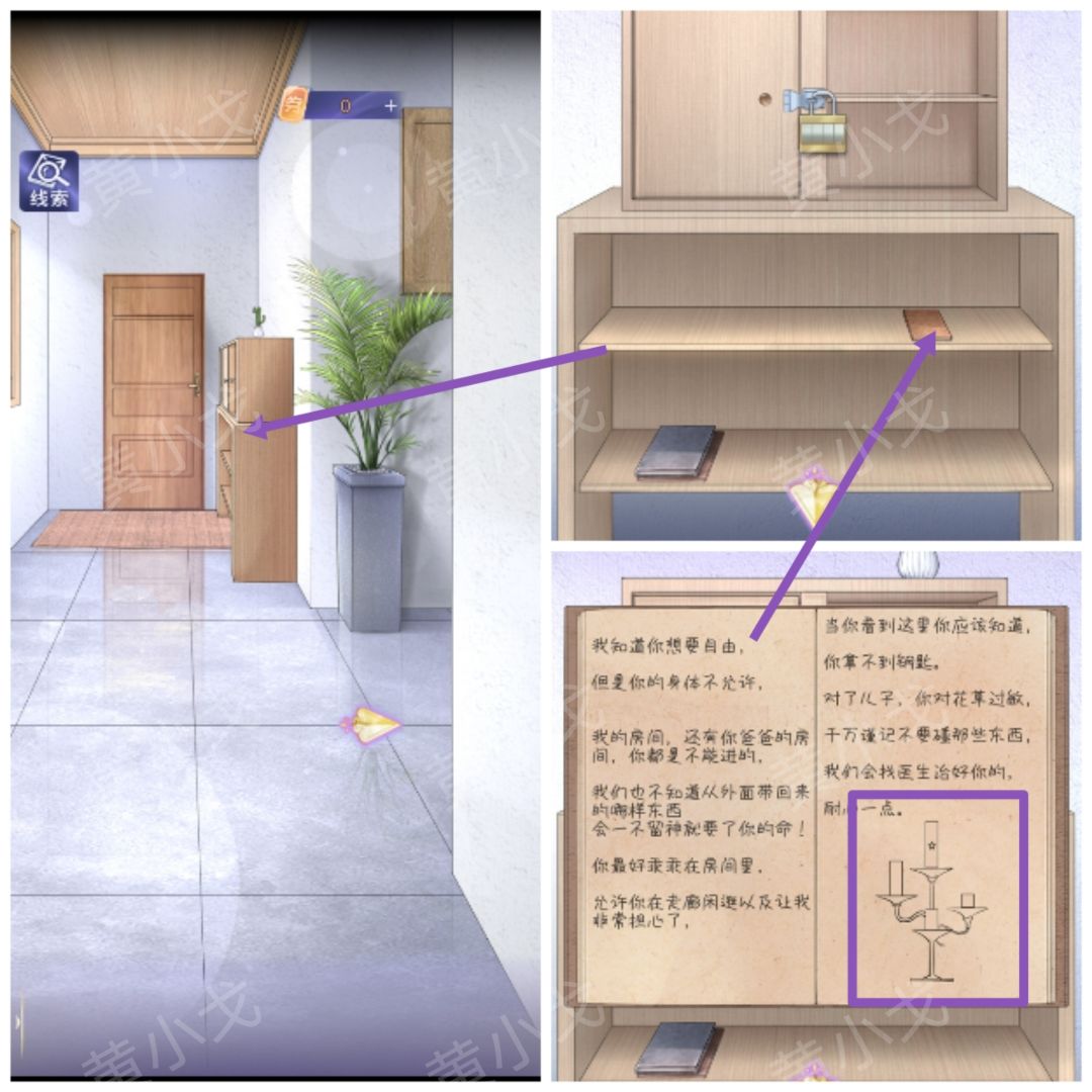 1.点击柜子,查看日记本内容,获得线索,告诉队友