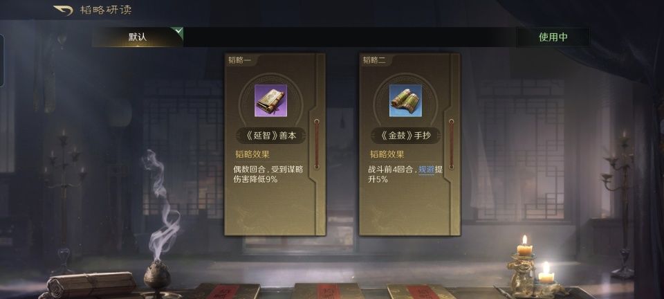 曹纯战法:天下骁锐+金城汤池+无难之志。韬略库:受到当前等级制约,只研读了延智善本和金鼓手抄。