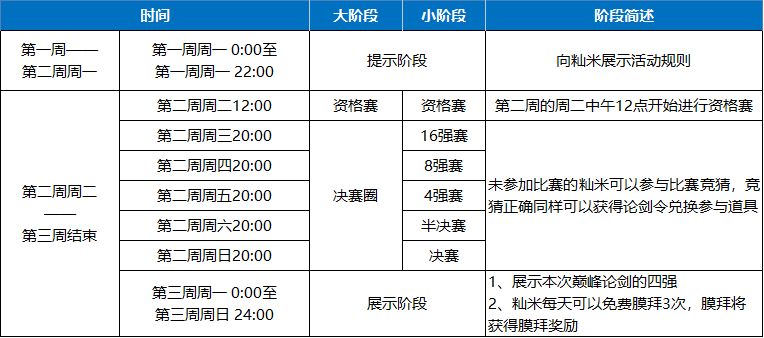 活动概览巅峰论剑将在开服满60天的区服中举行,共持续21天。