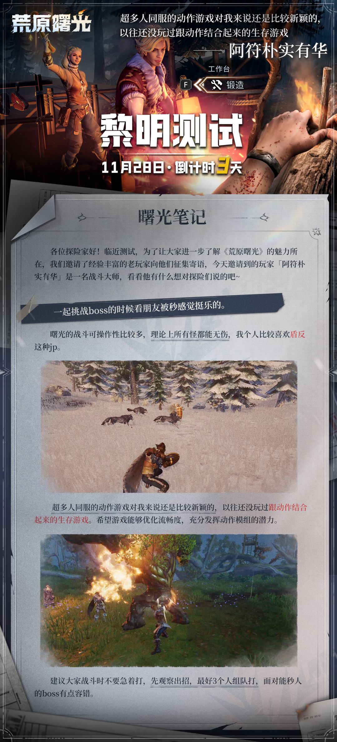 探险家们好,距离黎明测试开启仅剩3天啦!