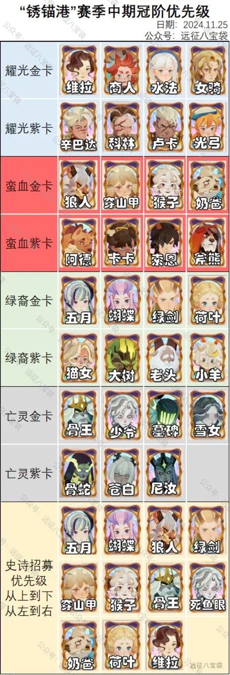 【远征八宝袋】“锈锚港”赛季中期冠阶优先级