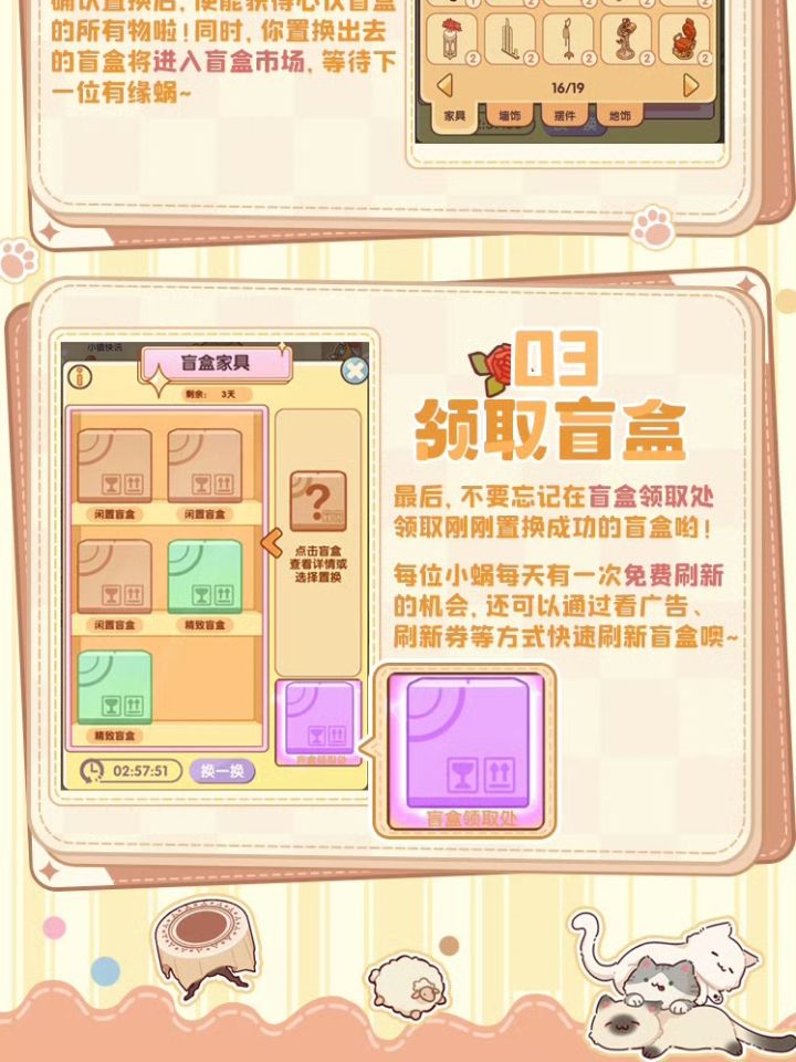 用自己选定的家具换盲盒家具,想要稀有度高的盲盒家具,自己也要选定高级稀有度的家具进行置换。