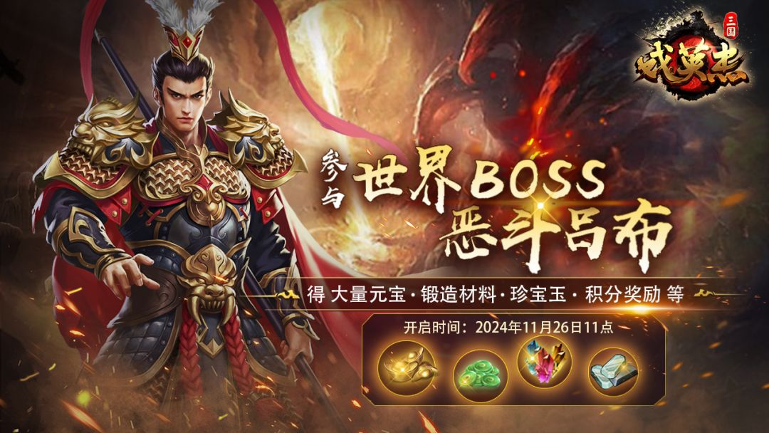 【世界BOSS-恶斗吕布】开启时间:2024年11月26日11点。