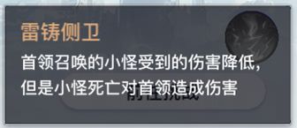 4、雷铸侧卫:首领召唤的小怪受到的伤害降低,但是小怪死亡对首领造成伤害。