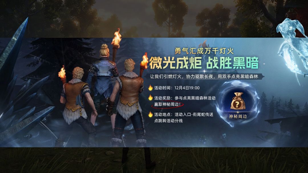 2、12月4日19:00准时参与点亮活动,即可赢取神秘周边。