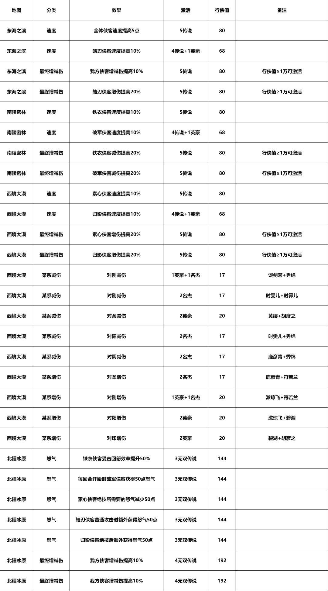 建议方案二:从早激活早享受的角度出发,自己的核心输出是归影则先西境,是皓刃则先东海;第二优先激活【北疆冰原】拉整体效果,之后根据需求去补其他地图的行侠值
