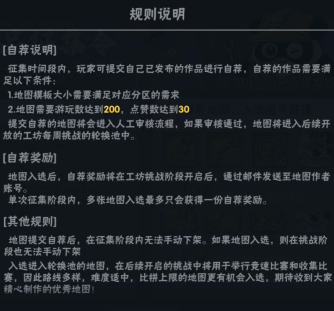 工坊挑战地图征集规则