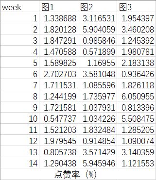 可以看到,点赞率前三的地图分别为第8周图3,第14周图2,第2周图2。