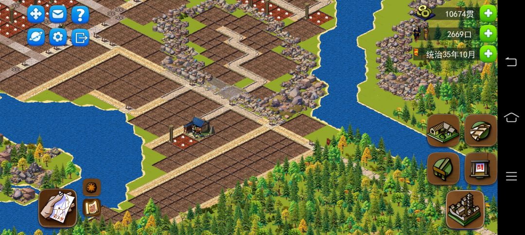 最后还差100人口最后补的一个小居民区!石头中间能放5个麦田,河边的民宅能覆盖到的,粮食不够可以用!