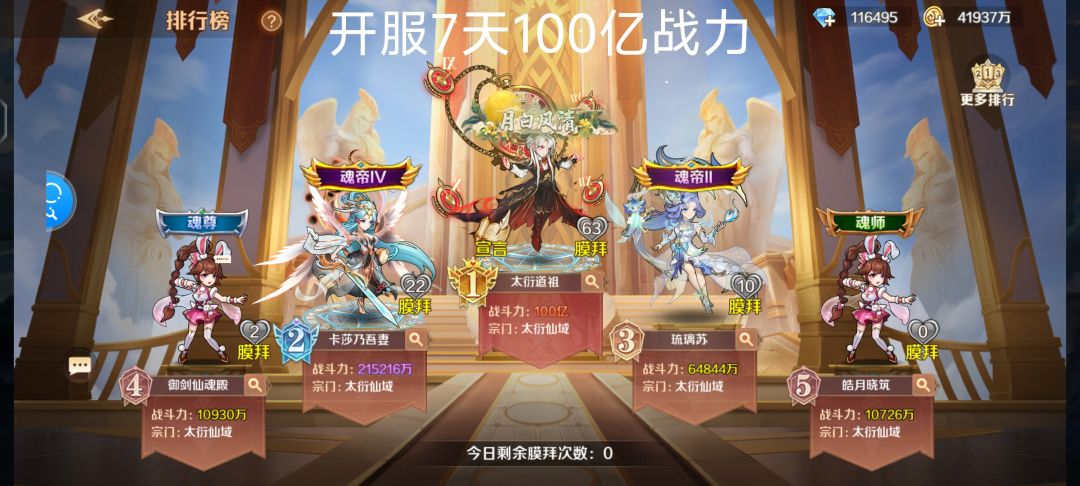 毕竟我第7天的时候才100亿战力,去年23年的时候我就入坑过,当时0氪第1个月才100亿,3个月400亿