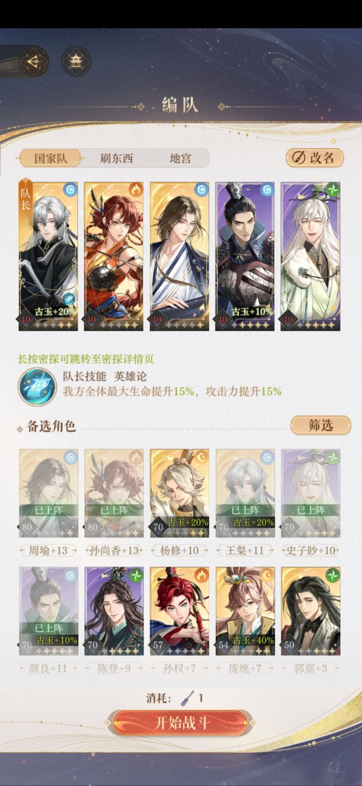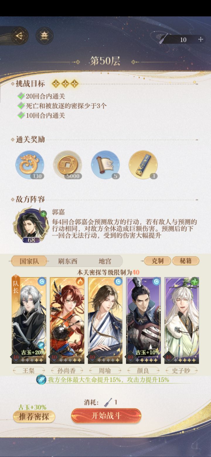图2这个练度基本可以挂机过,郭嘉发现全员蓝色不用管,继续挂机,全员绿色手动全员下拉防御就可以,基本就是8.9回合