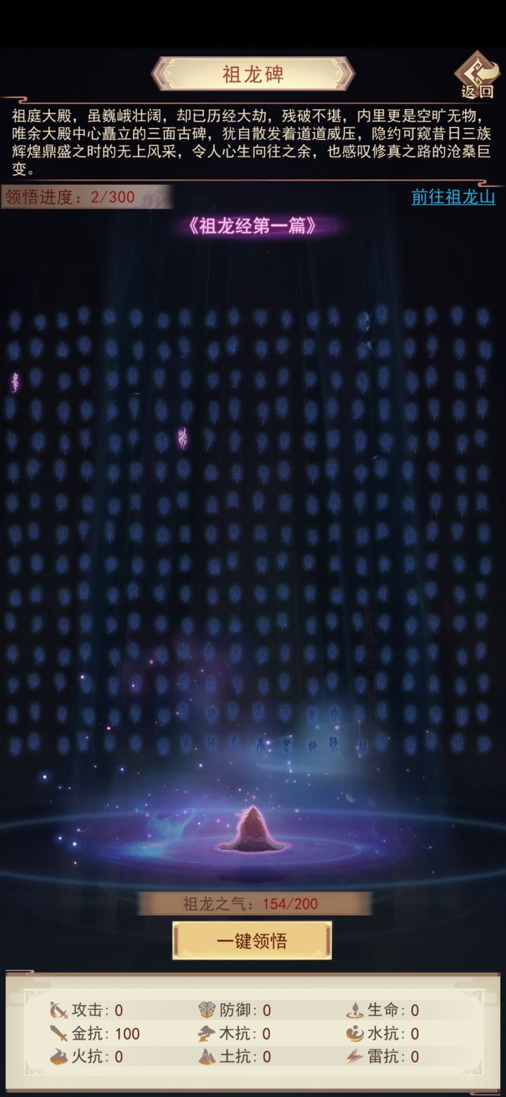 (1)祖庭大殿:龙、凤、麒麟三个碑文,消耗对应 气 可获得属性