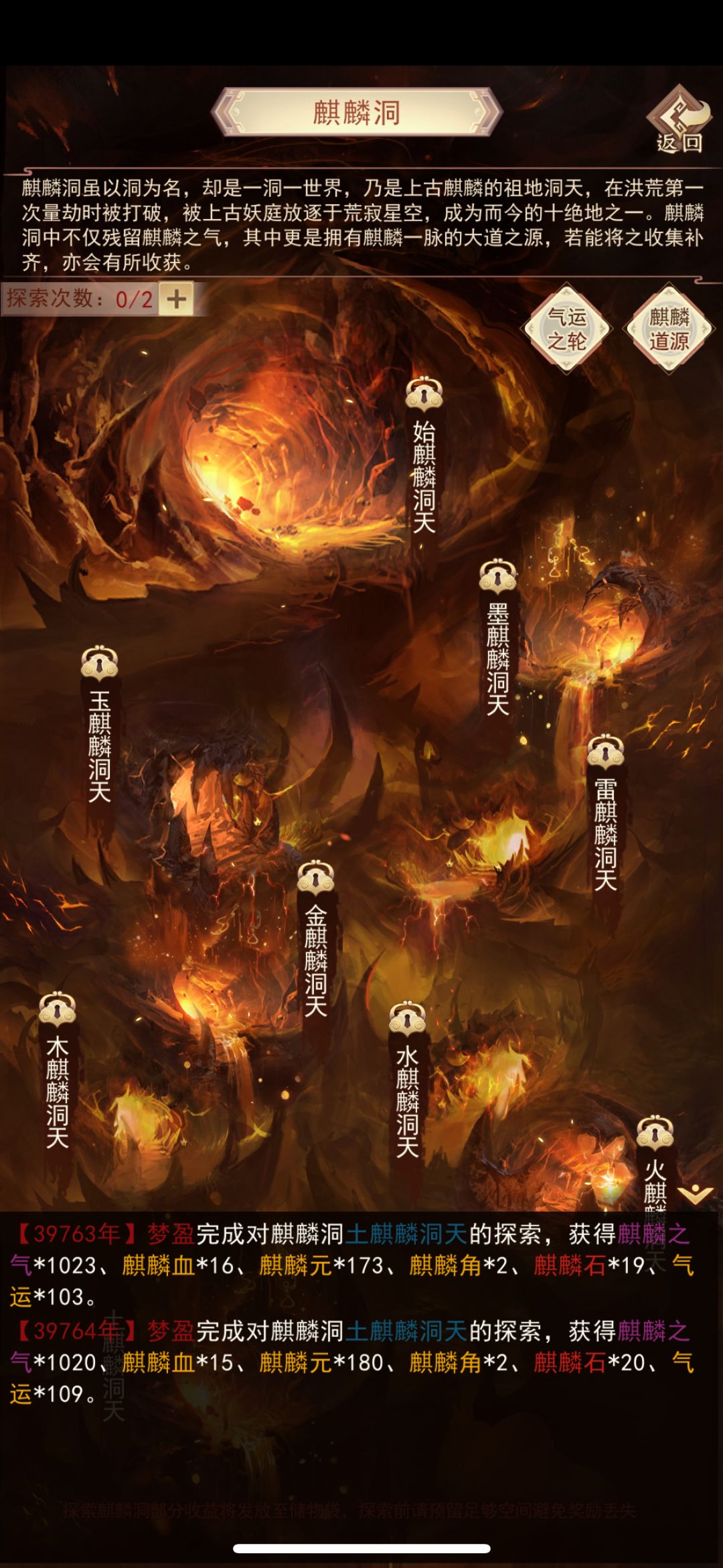 (1)每天可探索麒麟洞获得“麒麟之气”,麒麟信物额外探索一次,宝库购买