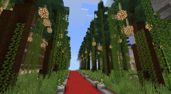 城堡外面两侧是高大的树林~