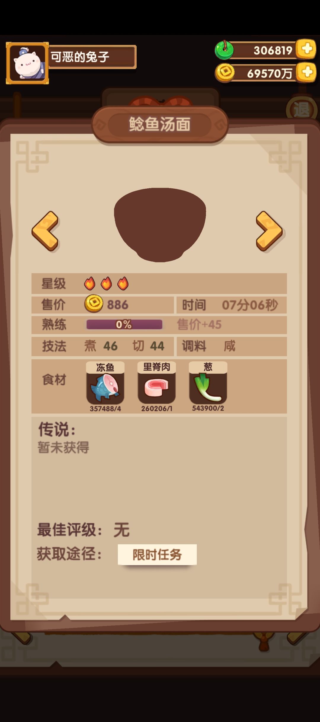 任务菜:鲶鱼汤面,这个耗材好像还挺友好。