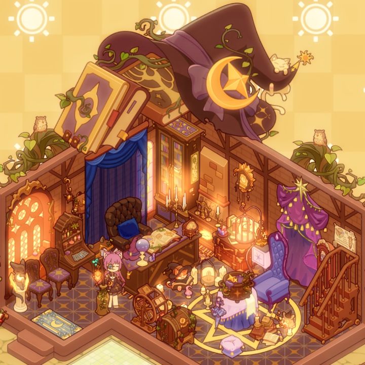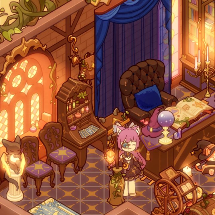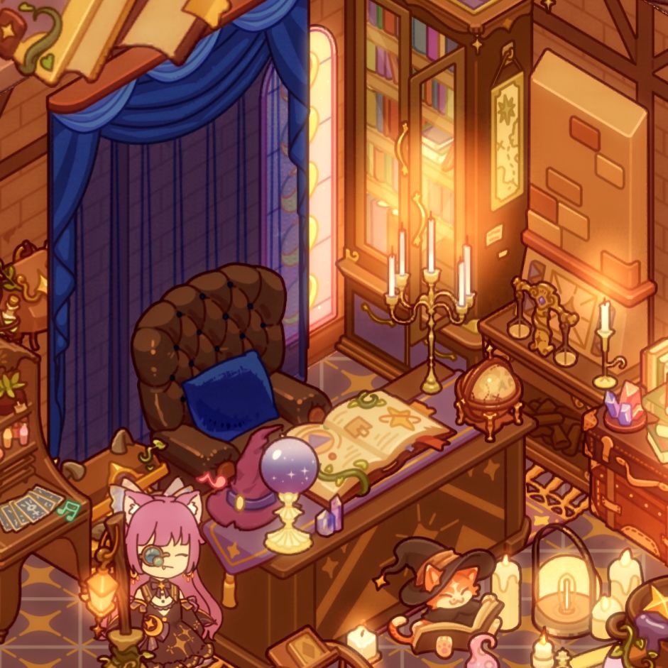 推开门的瞬间,仿佛时间都静止了。屋内弥漫着淡淡的熏香,烛光摇曳,营造出一种梦幻而神秘的氛围。墙壁上挂满了各种神秘的符号和图案,似乎在诉说着古老的故事。