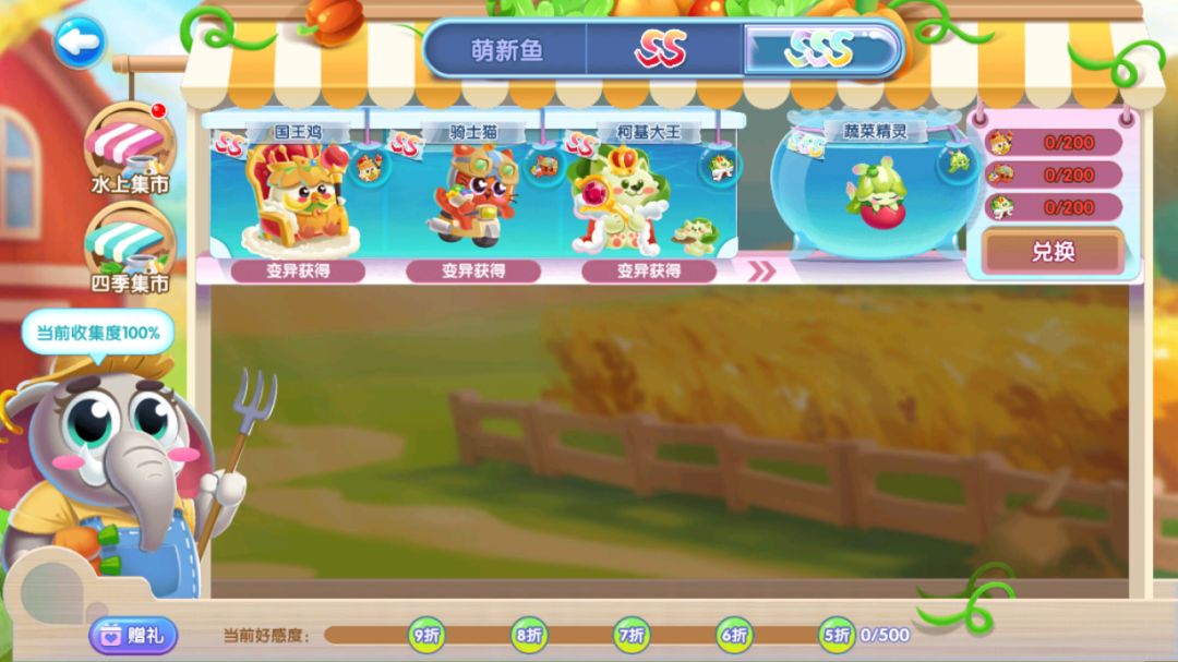 SSS级路线SSS级蔬菜精灵可离不开国王鸡、骑士猫、柯基大王这三只变异小家伙,通过TA们的鱼宝就可以兑换获得啦!