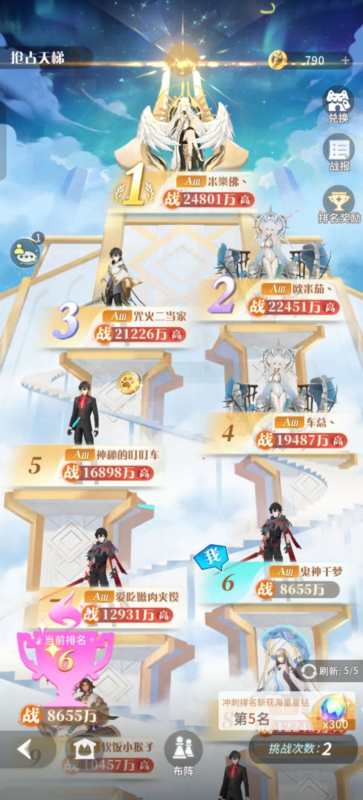 ①天梯0氪拿了第6的资源,排行榜上的基本上可以私聊,我就是第六大佬跟我同一个公会也在群里直接私聊就可以了,一般大佬都很好说话。让他给你下一下战力,让你打一次拿资源。一下可以领很多钻。