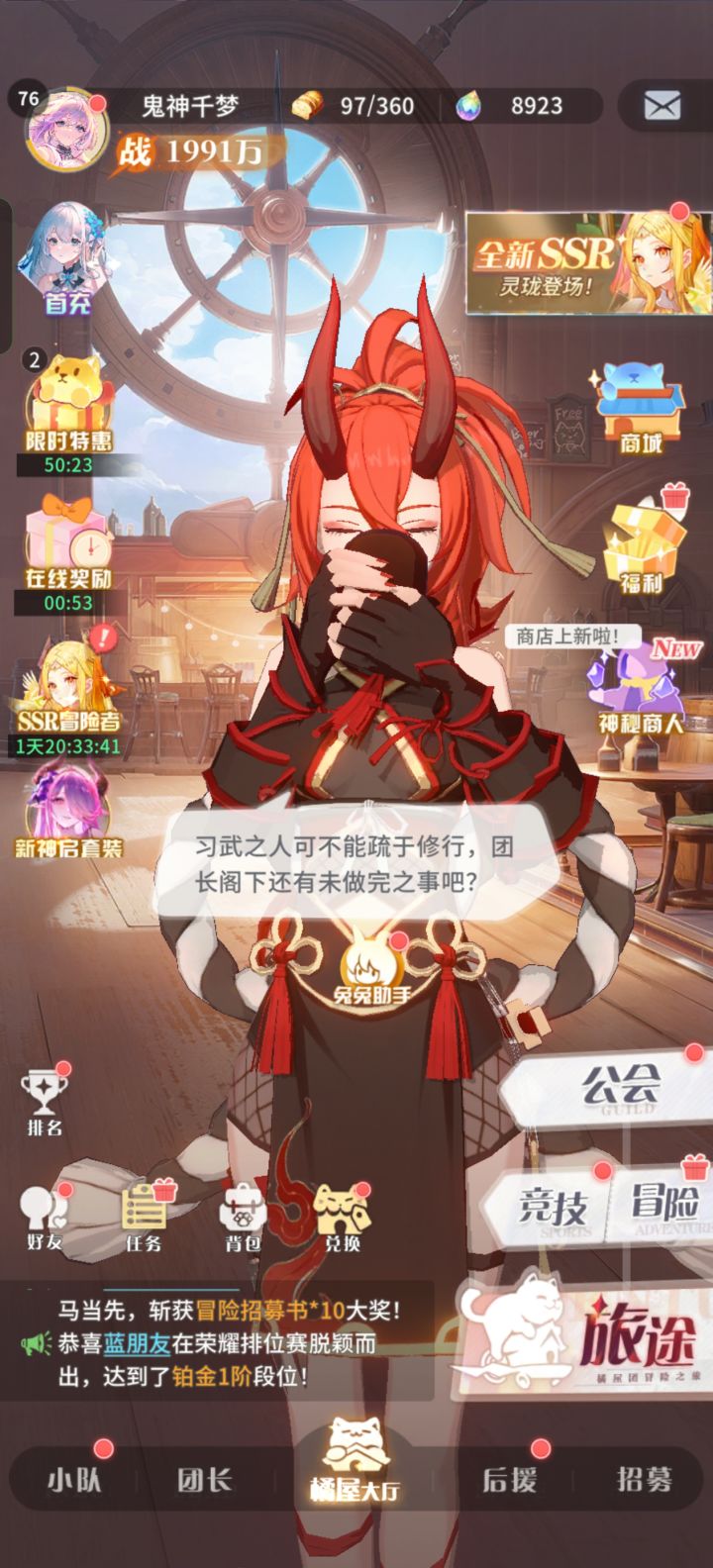 ①魔王讨伐,注意看血量,有时候血量低了,你起得晚,可能boss就被打死了,就少一次讨伐奖励。