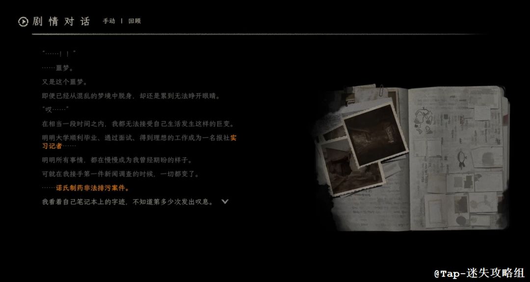 其实呢,游戏剧情就是在说女主角陈晞为了探寻自己为什么在调查诺氏制药污水排放问题过程中,老是一直梦见白河村被灭村的原因。从而得知1986年诺氏制药厂在白河村的上游就已出现,而且在厂子运作的过程中,白河村村民都受到很严重的水污染。但因为穷,再加上跟村长一伙的人大肆给村里人宣传迷信,说是只有金慈娘娘赐药才能治好村民身上的疾病,使得村民们白白失去了生命。村长他们却因此敛得大量的财富。