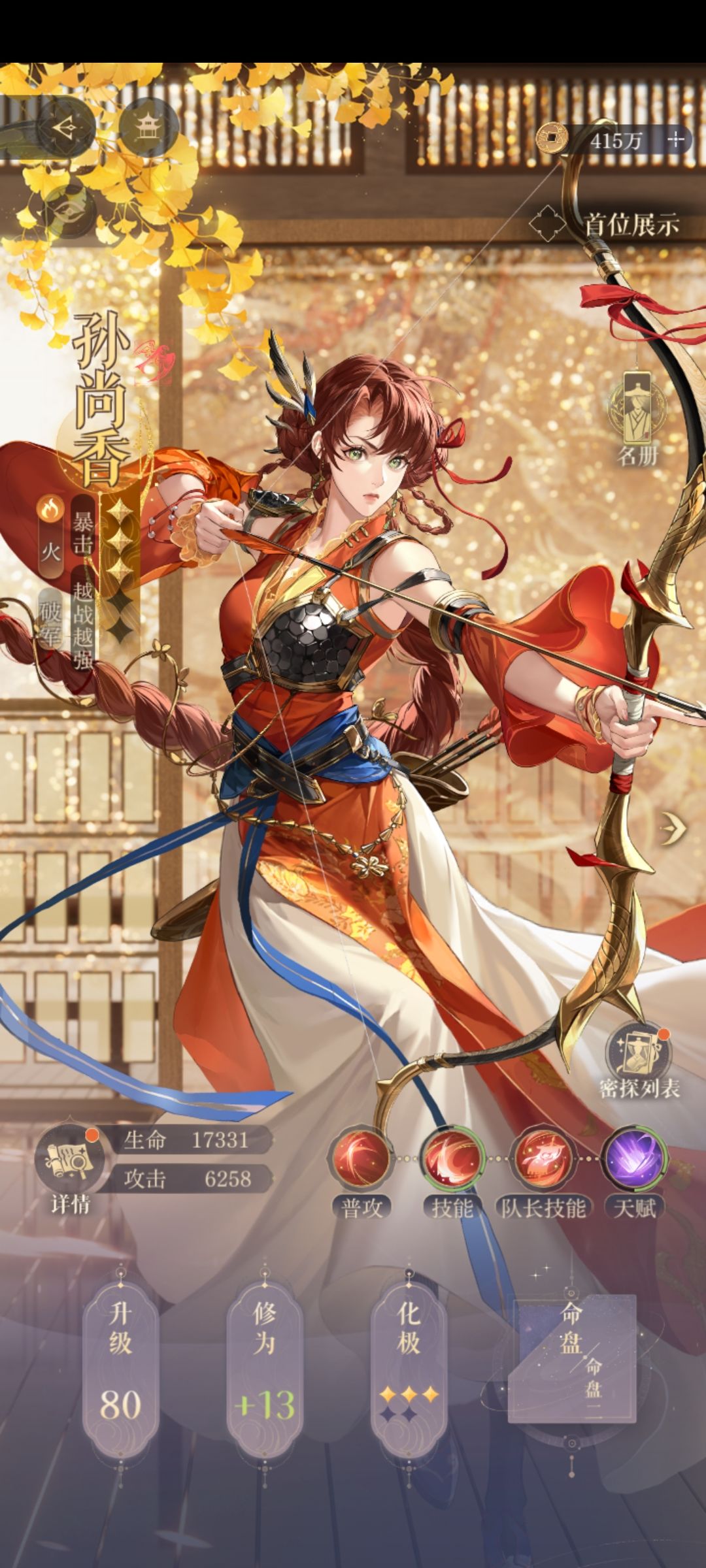 香(技中+生命高时攻击提升+暴击提升)