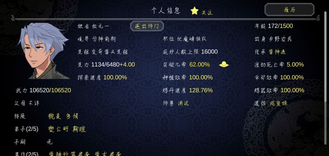 这变异灵根就离谱,机缘还高元婴后就没给他用过丹药(练不出来)一路瓶颈,基本一次就突破,160岁就分神期,还得到机缘突破率高到六十多了,比现代掌门整整高了一个大境界。。。这应该不会被某抽篡位吧,哈哈哈