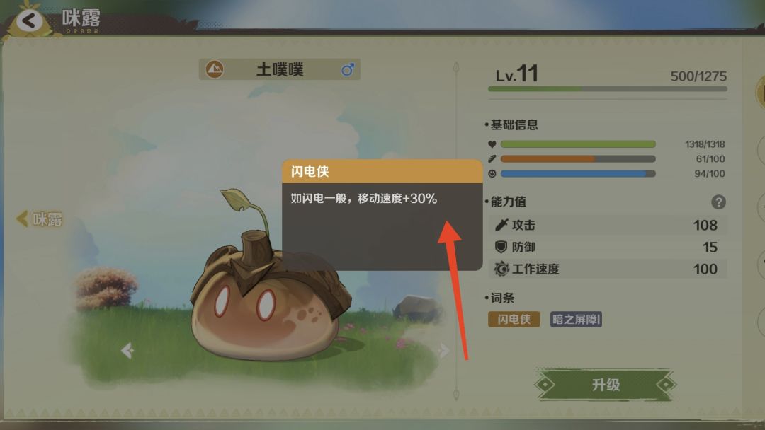 颜色暗一些、体型大一点的土噗噗,有闪电侠特性,提速30%,前期先捕捉一只。就是不知道,当初在哪里捕捉来着。