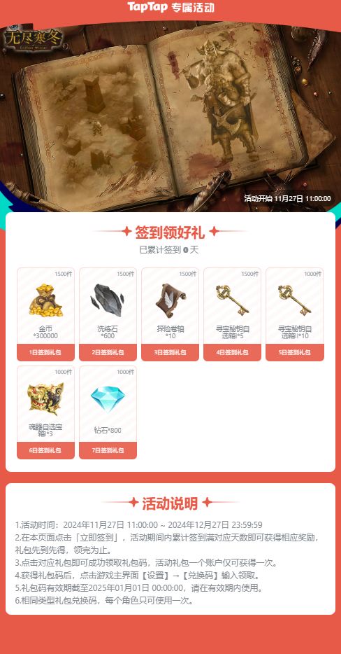 无尽寒冬-12月签到活动