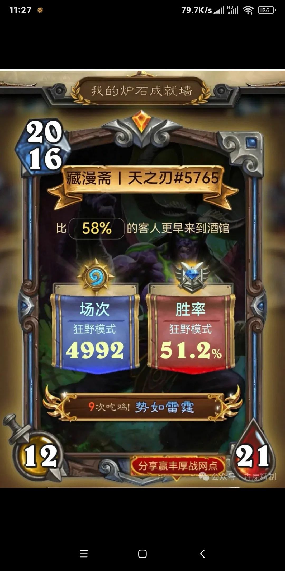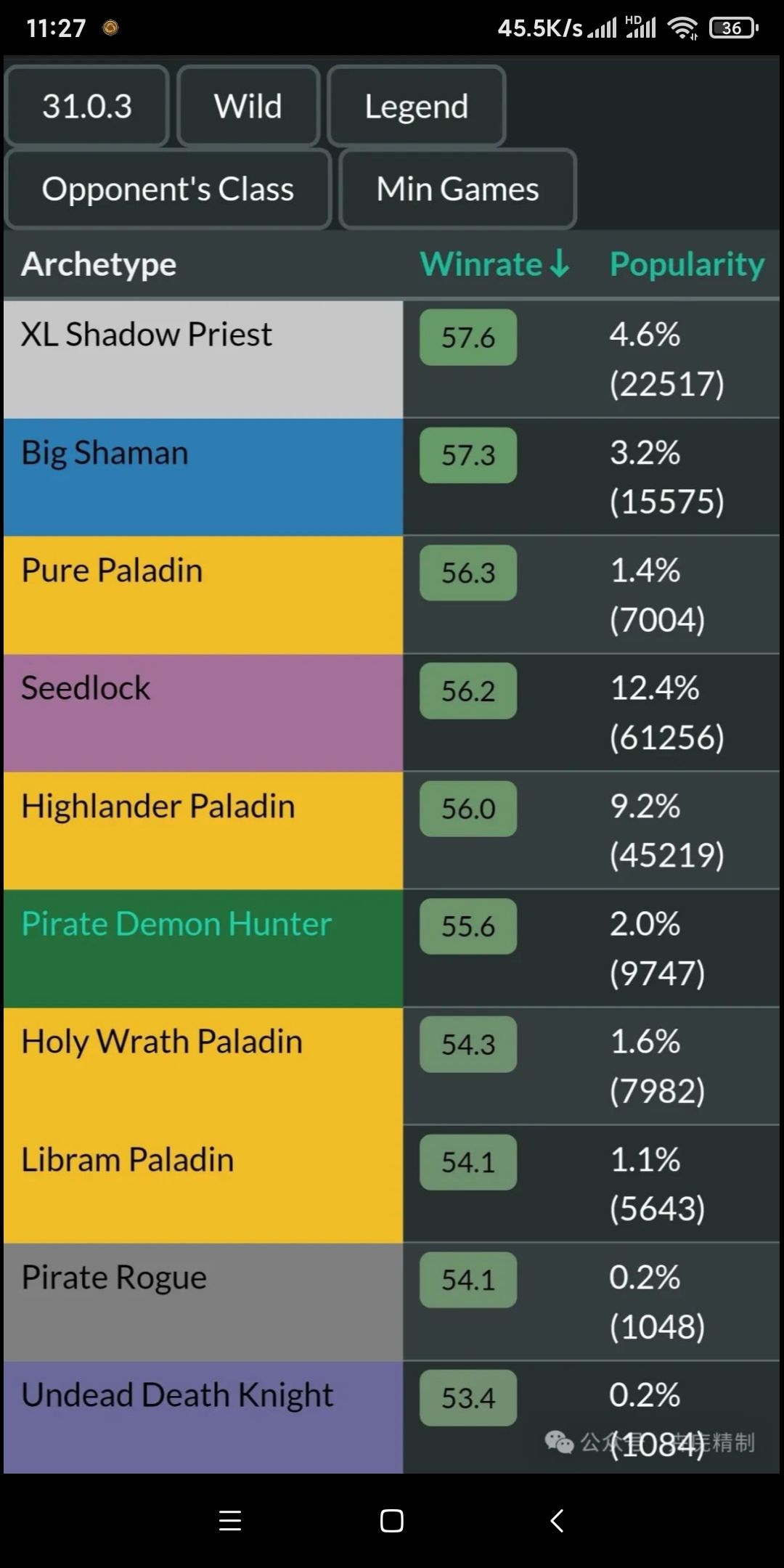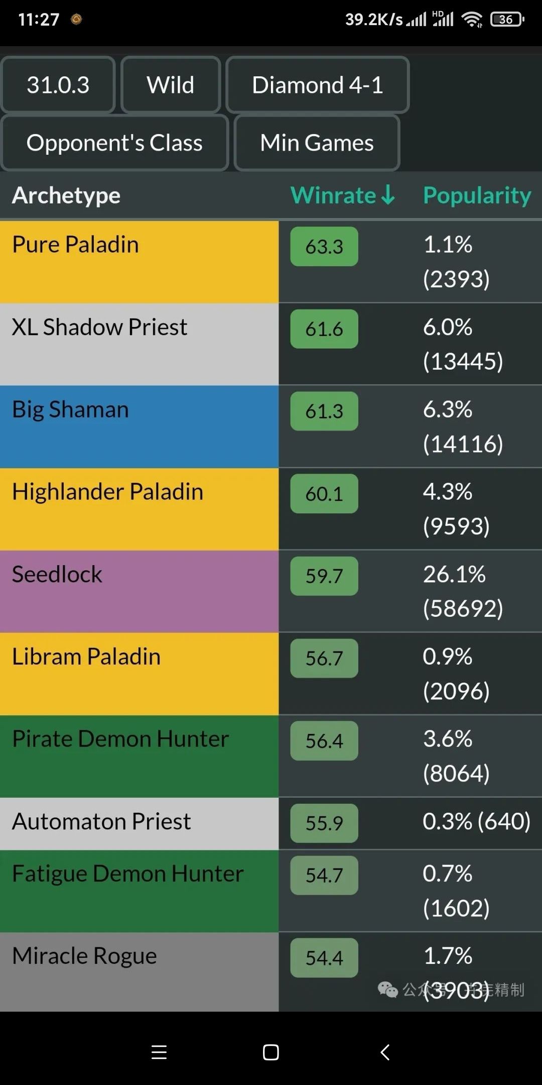上述统计数据仅包含82.2%的主流狂野卡组,还有不便分类的17.8%,那个职业形态就千奇百怪了,除了传说前1K有17种职业形态,传说前10K有31种,全传说分段竟然达到73种,钻石4-1有45种。#炉石传说