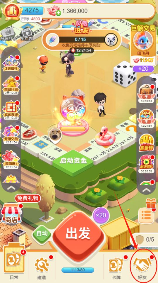 好友榜(好友列表):按等级排序(从高到低),可在好友榜界面赠送/收取骰子。