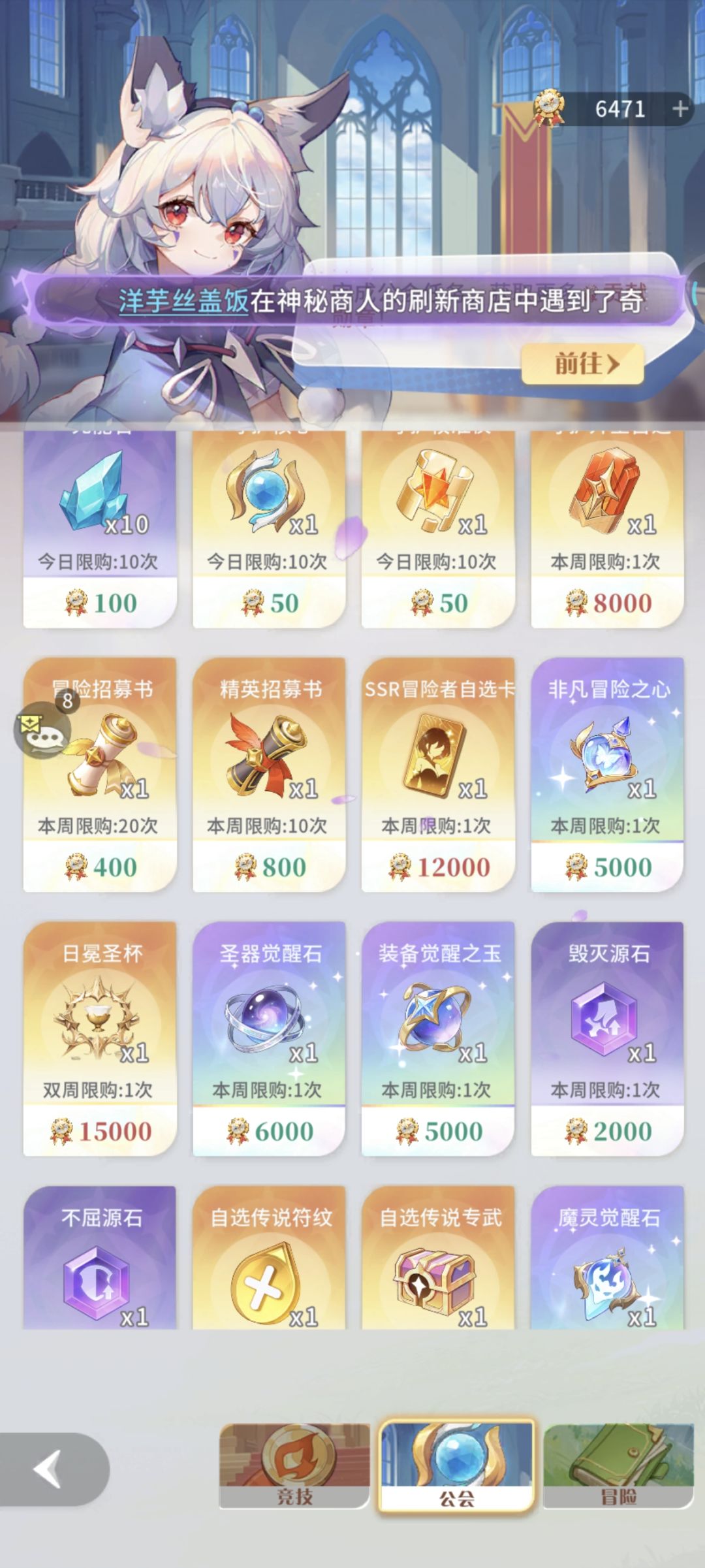 4.公会贡献,源石、非凡之心、装备觉醒之玉必拿,守护升星自选提升战力性价比高可以购买,圣器建议激活就行。